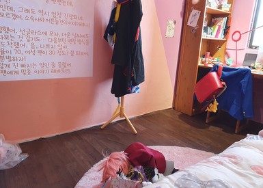 Yoonji Lee focuses on Moe Chimera. [‘moe’, a popular cultural pattern commonly used in Japanimation, derived from the Japanese word “moeru”, meaning “burning” and referred to as “enthusiastic element”. Among the “Moe Element”, not only elements that refer to appearances such as “Black hair”, “Loli” and “Bobbed Hair”, but also characteristics such as “Tsundere”, “Dumb”, “Megadere”, and “Yandere” are included in the Moe Element.] Just as chimera means a monster mixed with various animals such as lions, sheep, horses, and snakes, many elements are excessively clustered together to create a scary and unpleasant creation and called it “Moe chimera.” The exhibition was intended to visualize the excessive mixing of elements in the many moes in which human desires were projected, that is, the monster born of desire through the moe chimera. In particular, this exhibition starts with curiosity about what Missy’s room would look like if she existed, assuming the moe chimera “Missy”. The room is a very secretive and only place where you can see your personal life. Through a glimpse of the living space of Missy, who represents the collection of desires of Otaku cultural enthusiasts, we want to throw a topic into our lives, where we live between reality and ideals, and between the summit and abnormalities of large and small categories. By embellishing the virtual female moe chimera’s room on the border between reality and ideal, and maximizing the audience’s experience of exploring the corners of desks, beds, and secret diaries, visitors will experience the process of finding their own answers through clues (object and text).