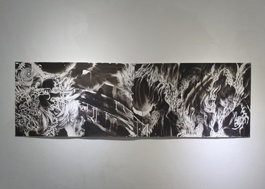 The scar of the left-handed middle finger, which I looked casually at, reminded me of one day when the light that came into the window felt unusually cold. The moment when the yellow, which was moving busily between the bars of the curved shape, and the black eyes met through the hectic gap, lingers around regardless of their will. The sense of the day poured out of the spray truck that was passing by me. The stream flows through the intersecting of people on the crossing, and between colorful but neat landscaping, the smell of grass that rises recklessly. Past memories intertwine with the present, which will become new memories, to create holes. The gap between fillings and emptiness generously embraces the various stimuli flowing around and evokes a sense of “living” here. I mince such an indescribable state of improvising on a piece of paper with a pointed pen tip.
