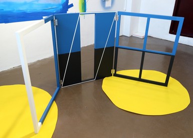 Painting, a representative medium in a two-dimensional plane, mostly deploys images in the space in the frame. Accordingly, when we appreciate or think of painting, we see and think of images in frames hanging on the wall. At the same time as asking questions about such unconsciously defined ‘painting’, the artist focuses on the elements that form and define the medium called painting: frame, materiality, and flatness.