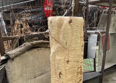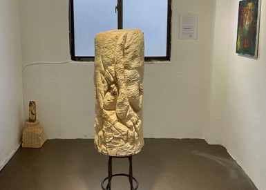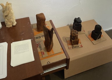 작년 여름, 회화작업들에서 두드러졌던 평면적인 화면을 극복하고자, 공간감을 가진 화면을 만들기 위해 선택한 방법은 조각을 배우는 것이었다. 그렇게 목조각을 시작하게 되었다. 조각은 회화보다 완성하는데 시간이 많이 걸린다. 시간도 시간이지만, 물리적으로 들이는 힘에 비해 반응이나 변화가 적어서 인내심이 필수다. 나는 인내심이 없는 것 같은데 (뭐든 서두르고 대충대충 하는 편) 목조각은 의외로 잘 맞았다. 회화는 할수록 마음이 번잡해지는 반면, 목조각은 조금씩 깎아나갈 때마다 어떤 형태가 튀어나오지 않아도 마음이 계속해서 안정되는 느낌이다. 조각을 하는 과정은 음식을 먹을 때와 유사했다. 이는 음식을 자르고, 혀는 동시에 잘린 음식들을 실어 나르고. 이 과정은 매우 일사분란하게 움직여야 한다. 다른 생각을 하는 순간 다치게 되어있다. 그런 긴장감도 어쩌면 조각의 매력일지도 모르겠다. 그렇게 야금야금 파다보면 마치, 아주 작고 단단한 입을 가진 동물이 되어 나무를 파먹는 느낌이다.