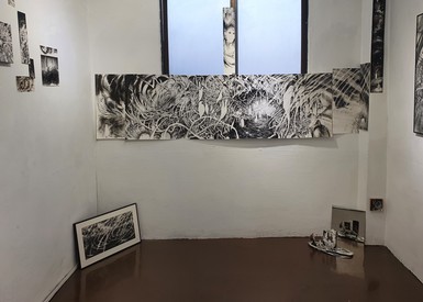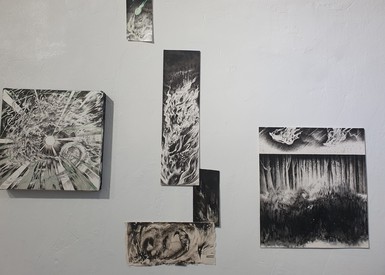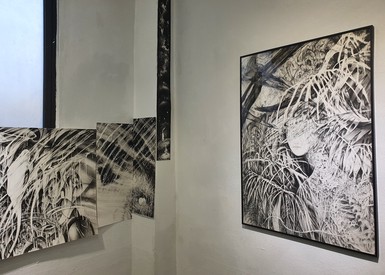 무심코 바라본 왼손 중지의 흉터는 창가로 들어온 빛이 유난히 시리게 느껴지던 어느 날을 상기시켰다. 곡선형의 창살 사이로 바삐 움직이던 노랑, 그 정신 없는 틈으로 마주친 까만 눈동자의 모호한 시선을 한참 쫓던 순간이 의지와는 상관없이 주변을 맴돈다. 그날의 감각은 내 옆을 지나치던 살수차에서 쏟아졌다. 흘러나온 물줄기는 건널목 위 사람들의 엇갈림을 지나, 알록달록 하지만 정갈한 조경 사이사이 마구잡이로 솟아난 풀의 내음이 풍기는 풍경으로 흐른다. 흘러간 자리엔 지난 기억과 새로운 기억이 될 현재가 뒤얽혀 구멍들을 만들어낸다. 채워졌는지 텅 비었는지 모를 틈은 주변에서 흘러오는 여러 자극을 관대하게 받아들이며 지금-여기 ‘살아 있다’라는 감각을 발화하듯 일깨운다. 나는 그런 형언할 수 없는 즉발 직전의 상태를 뾰족한 펜 끝으로 종이 위에 곱씹듯 새긴다.