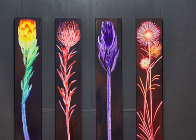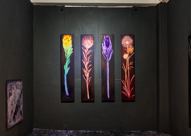 자생하는 프로테아는 특이하게도 번식을 산불에 의존하는데, 이는 열매가 불에 닿아야만 종자를 퍼트릴 수 있다는 뜻입니다. 작가는 우리의 마음 안에 피고 지는 감정도 이와 같다고 말합니다. 개인 내면에 자리한 여러 감정들을 사회에 꺼내어 타인과 공유하고 연결함으로써, 그것이 발화되고 퍼지면서 세상에 영원히 존재하는 것이죠. 그렇기에 본 전시에서 작가는 현시대를 살아가고 있는 이들에게 각자 마음 속에 있는 감정을 오롯이 마주하고 불을 붙여 공유하기를 제안합니다.