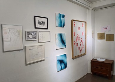 에니: 비가시적 감각을 접촉을 통해 가시화하는것으로 실험을 하고 있다. 이번 아트페어에 소개하는 작품은 연작중 한 점이다. 딱딱한 것과 말랑한 것, 하얀 것과 그림자, 다른 성질의 것들은 접촉을 통해 한자리에 모이게 된다.