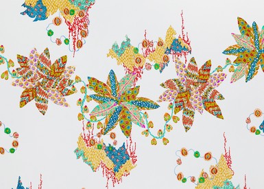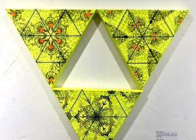 hyohyo: 나는 자연의 여러 모양들에서 영감을 받아 보이지 않는 세계의 유기체들을 그린다. 이 작품은 섬에서 발견하거나 마음에 남은 모양들이 시작이 되었다.
