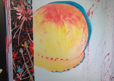 구체적 공간의 환영성에 포치되지 않고, 플랫한 붓질과 최소한의 개별적 음영만을 가지고서 임의 배치된, 캔버스에 ‘발린’ 도무송들. 얇게 말라붙은 채색으로 캔버스 표면의 질감이 화면상의 노이즈처럼 지글거리면서 미세하게 진동시키는 건, 단호하고도 다감한 손길로 마름질된 윤곽선입니다. ‘도려내기’의 논리는 또 여러모로 변주되는데, 채희씬 캔버스를 절단해 ‘마테’를 연상시키는 긴 화면을 병치시키는가 하면, 그나마 화훼화적이거나 정물화적인 캔버스의 경우엔 잘려나온 사진처럼 화면 바깥을 적극적으로 암시하기도 합니다. 결과적으로 《액체 도무송》은 마치 이야기를 잃고 신체 안에서 죽어가는 기억의 이케바나처럼 보입니다. 그러나 여기엔 그 재료가 된 ‘내 기억’이라는 특권의식은 없습니다. 우리는 물론 채희씨조차도 붓 끝 실감의 이편과 저편 어디에서 도무송이 만들어지는가를 엄밀하겐 단정할 수 없고, 채희씨의 다이어리란 그렇게 내 몸이 끊어낸 세계, 도무송 ‘바깥’에 역설적인 질량을 부여하려는 수행입니다. 마지막 한숨처럼 드립핑된 물감은, 도무송들이 흘린 피처럼 보이기도, 미처 도무송이 되지 못한 것들에 대한 애도의 표식처럼 보이기도 합니다.