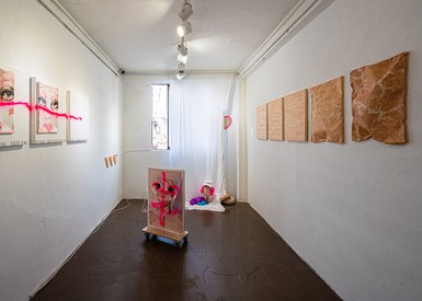 작가는 이곳에서 분신1로 분해 일련의 비회화-설치 작업을 보여준다. 그에게 있어 회화와 비회화 작업 사이에는 매체라는 차이뿐만 아니라 작업을 대하는 태도에서 가장 큰 차이가 있다. 회화가 자신의 내면으로 침잠하는 작업이라면, 비회화 작업은 좀 더 세상과 관계를 맺고 있다는 것이다. 이렇게 본체와 분신, 회화와 비회화를 구분하는 모습은 오히려 실제 작가(본체)의 존재감을 더욱 공고하게 만든다. 이곳에 전시된 작품들과 전시를 홍보하기 위한 인스타그램 계정에는 본체의 흔적들이 조각난 채로 남아있다. 전시장을 찾은 관객들, 특히 작가의 기존 작업을 지켜봐 온 사람이라면 이러한 흔적들을 조각조각 모아 그의 정체를 특정하는 것이 어렵지 않을지도 모른다. 하지만 아마도, 우리는 끝까지 쫓아가 그가 누군지 밝혀내려 하지 않을 것이다. 우악스럽게 분신의 가면을 거꾸로 뒤집어 그가 누군지 밝혀내려 한다면 더 이상의 분신술은 보지 못 할지도 모르기 때문이다. 작가는 왜 이렇게 느슨한 가면을 쓰고서라도 자신과 거리를 둔 채 이야기해야 했을까.