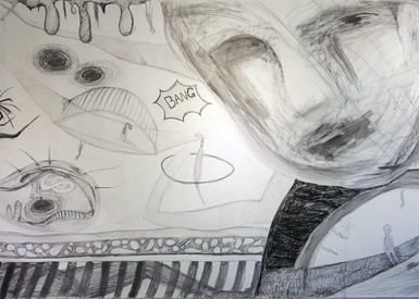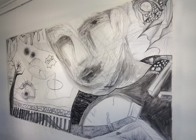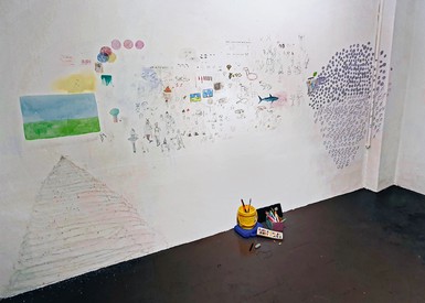 오직 자기만의 세계 안으로 빠져드는 방법. 풍위엔은 보름간 자신의 세계로 빠져들기 위해 드로잉을 했다. 3마 정도의 캔버스 안에서 외부, 타인, 세상이 아닌 오직 내면만 들여다보며 수련했다. 늘 같은 시간에 가삼로지을에 와서 오직 자신만 생각하며 발굴했다.
